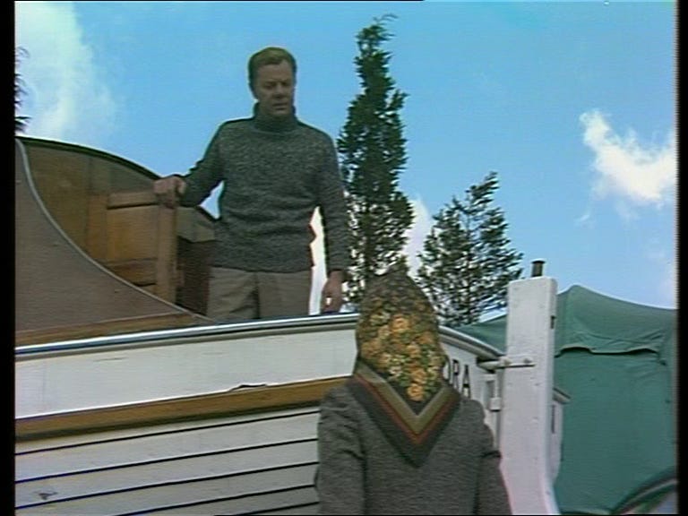 I also wouldn’t quite say the entire cast spend the entire episode hammered out of their minds, but there is also quite a lot of heavy drinking going on in this episode. The daughter in law decides one day she is going to settle in the bar and simply doesn’t move. There is another marvellous scene where Marker goes to see a local artist at the shop she runs. She is out when he arrives and is plainly a raging alcoholic because she has had to go out and get some gin to get over the night before. I love that she takes Marker into the back room of the shop, which is half kitchen and half studio, and gives him a gin as well as having one herself, first thing in the morning. Even Marker downs more gin rather than the beer he normally does, largely as part of his role as a guest in the hotel, chatting to the family in the bar.